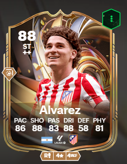 - Julian Alvarez (88 ST - Ratings Reload): An excellent striker with a very good playstyle and statistics, an absolutely top-notch card.