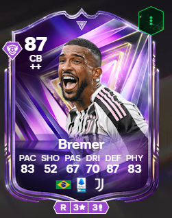 - Bremer (87 CB - FC Pro): The Brazilian's basic card was one of the most frequently chosen centre-back cards at the very beginning of the game. Now we have a special card that significantly improves his stats. If there are any upgrades, it will be one of the best cards in its position.