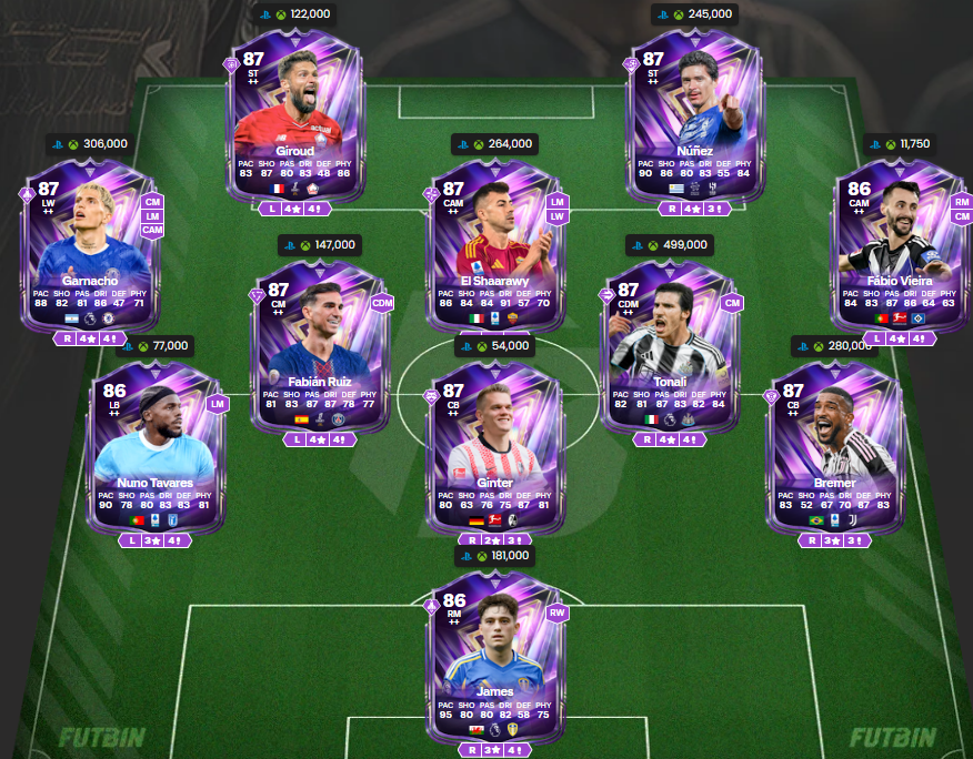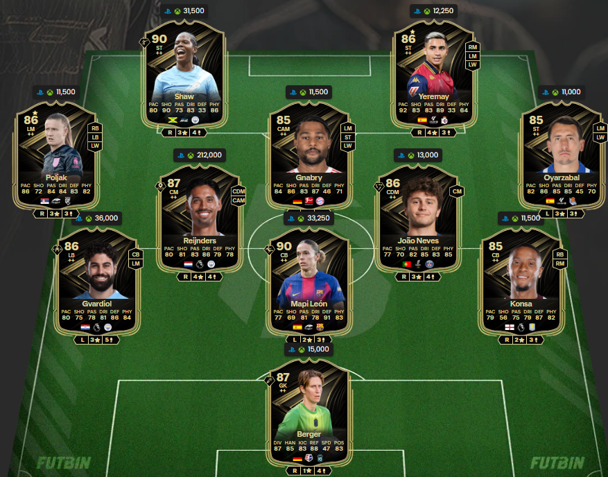 - Greenwood POTM: Special card Ligue 1 Player of the Month. An interesting SBC for a card that can play both as a CAM and right wing. Good stats and very good basic playstyles make this an interesting option at this challenge price. The cheapest solutions are around 48k FC 26 Coins for the entire challenge group.