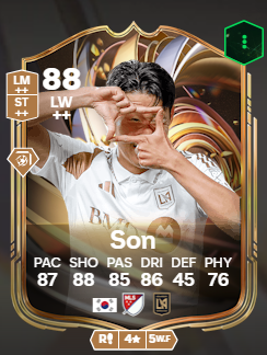 - Son (88 LW - Ratings Reload): A striker who stands out with his excellent shots, good pace and playstyle. A very meta card, the only problem may be fitting him into the squad.