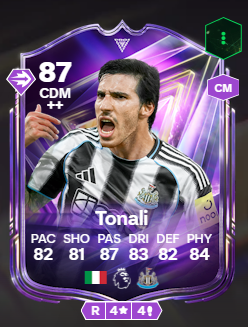 - Tonali (87 CDM - FC Pro): The Italian midfielder's special card is already impressive. Very good playstyles, good statistics and roles, plus a possible upgrade make him a very interesting choice for the central midfielder position.
