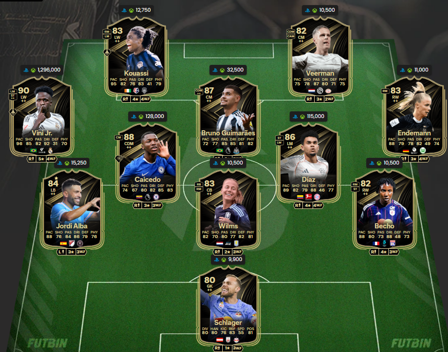 - Vini Jr. (90 LW - Inform): A card for Brazilian player is one of the best choices for the left wing position in the entire game. An incredible card with incredible stats!